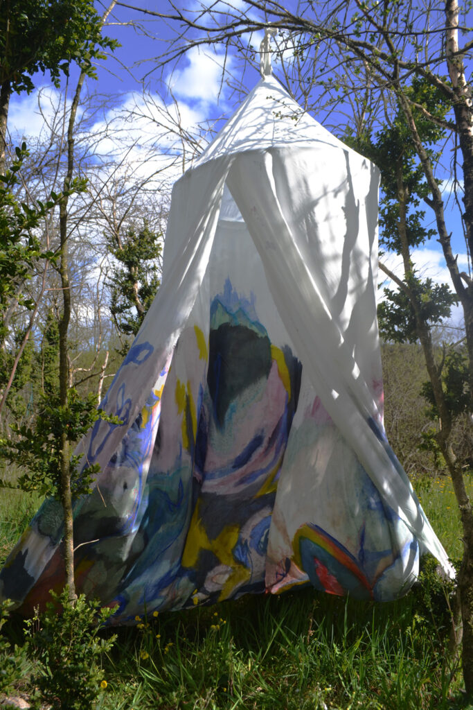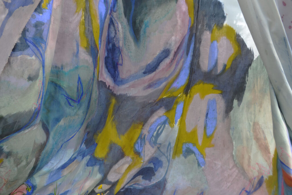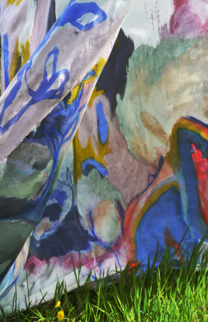 Pigments, acrylique et encre sur toile de coton popeline cousue,